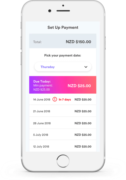 spread the total cost over 6 weekly automatic payments. Interest Free.